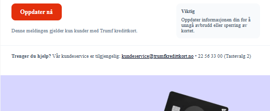 Merk at Trumf aldri vil be om slike opplysninger uten at kunde selv tar kontakt.